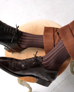 表と裏、どちらでも着用可能なソックスというコンセプトは、イルレガロの代表的なアイディアですが、新しいデザインのリバーシブルソックスが新登場です。 この新しいリバーシブルバイカラーロングホーズは、繊細なリブ目の間からもう片方の色が見え...