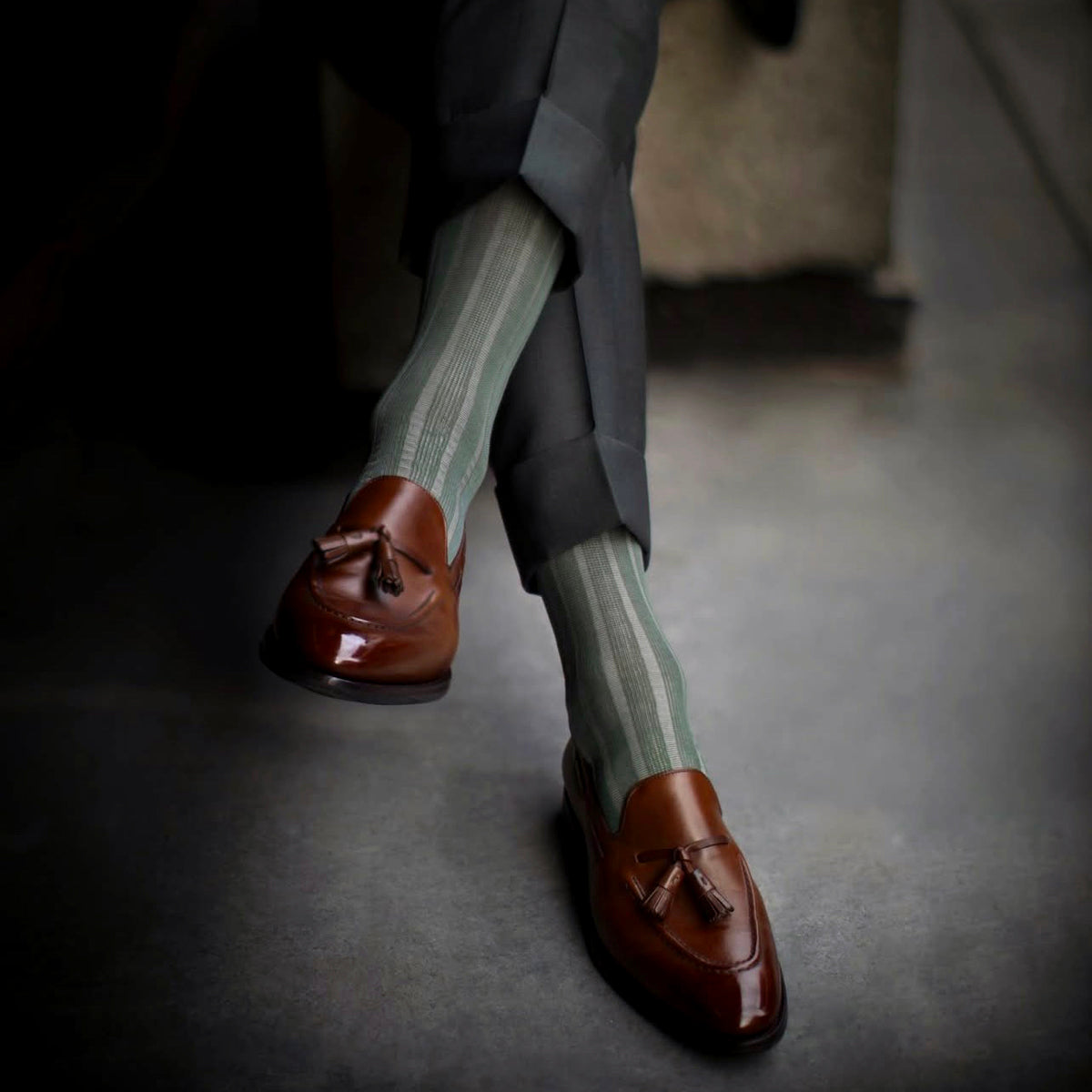 ジャカード編みの太めのラインが、足元に立体感を生み出します。