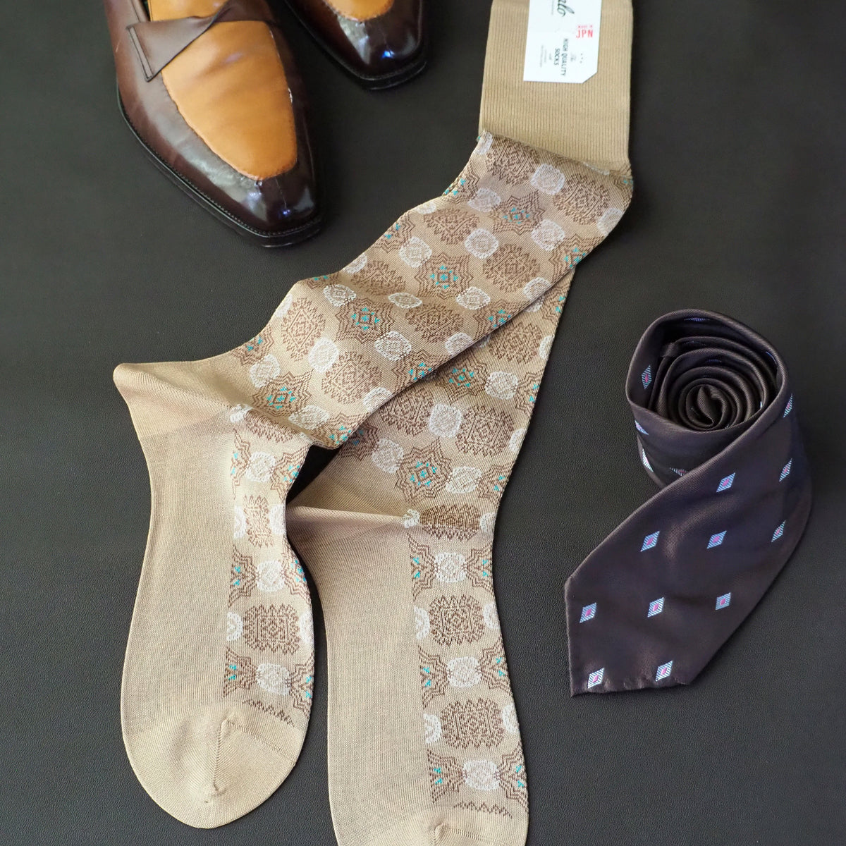 Crafted from cotton yarn treated with mercerization, a process that removes surface fuzz, enhancing color clarity and giving the fabric a refined sheen.