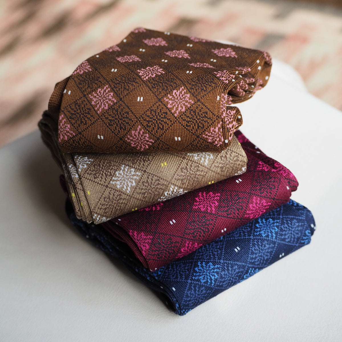 クラシックなひし形をベースに、植物を思わせる繊細な模様を丁寧に重ねました。